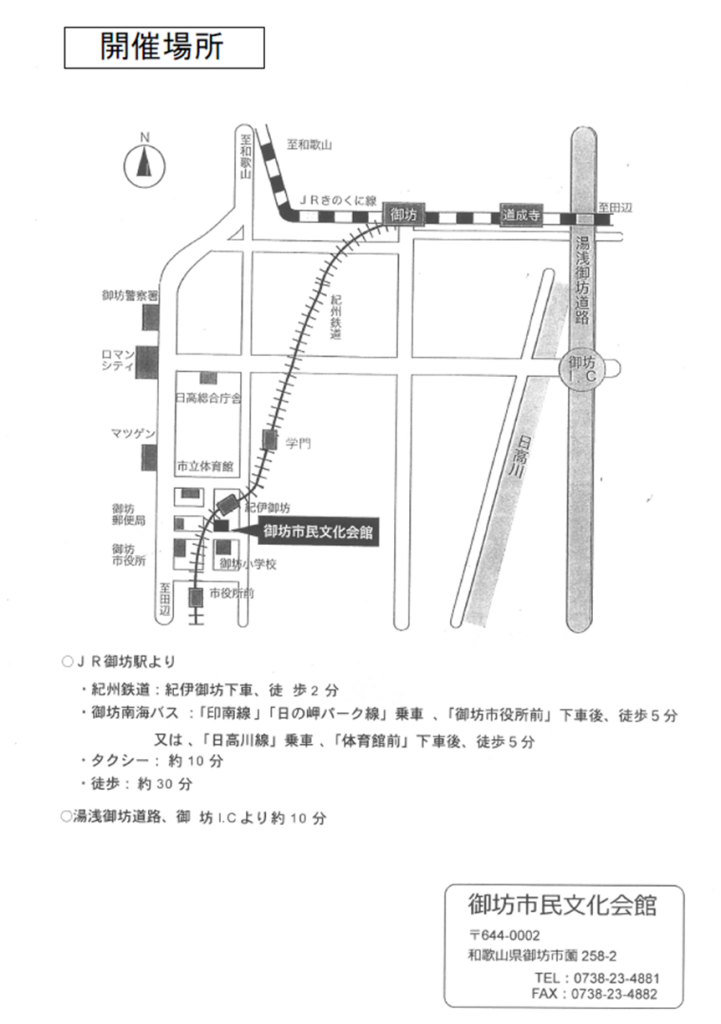 | 説明会の開催場所(住所) | 和歌山県御坊市薗258番地2 御坊市民文化会館 大ホール | |